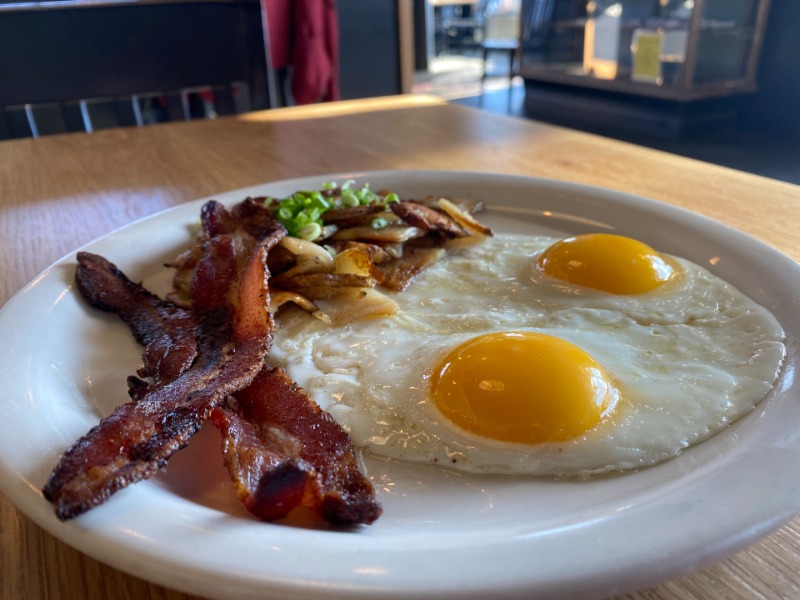 > PLEASE CHOOSE ONE <BACON HAM VEGE SAUSAGE CHICKEN APPLE SAUSAGE WILD BOAR SAUSAGE ($1.50)PORK SAUSAGE KOREAN STYLE HANGER STEAK ($5.00)NO, THANKS