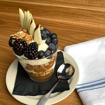 Greek-style plain yogurt, honey, house made granola, seasonal compote, and fresh fruit.