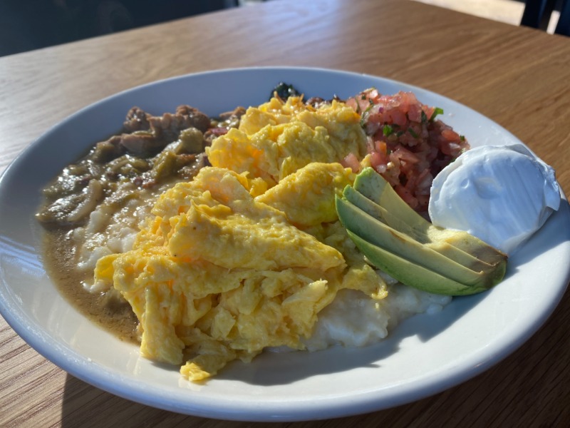 Order online for takeout: PORK GREEN CHILI AND GRITS from The Universal. Serving the best pancakes, scrambles, biscuits, sandwiches, grits in Denver, CO.